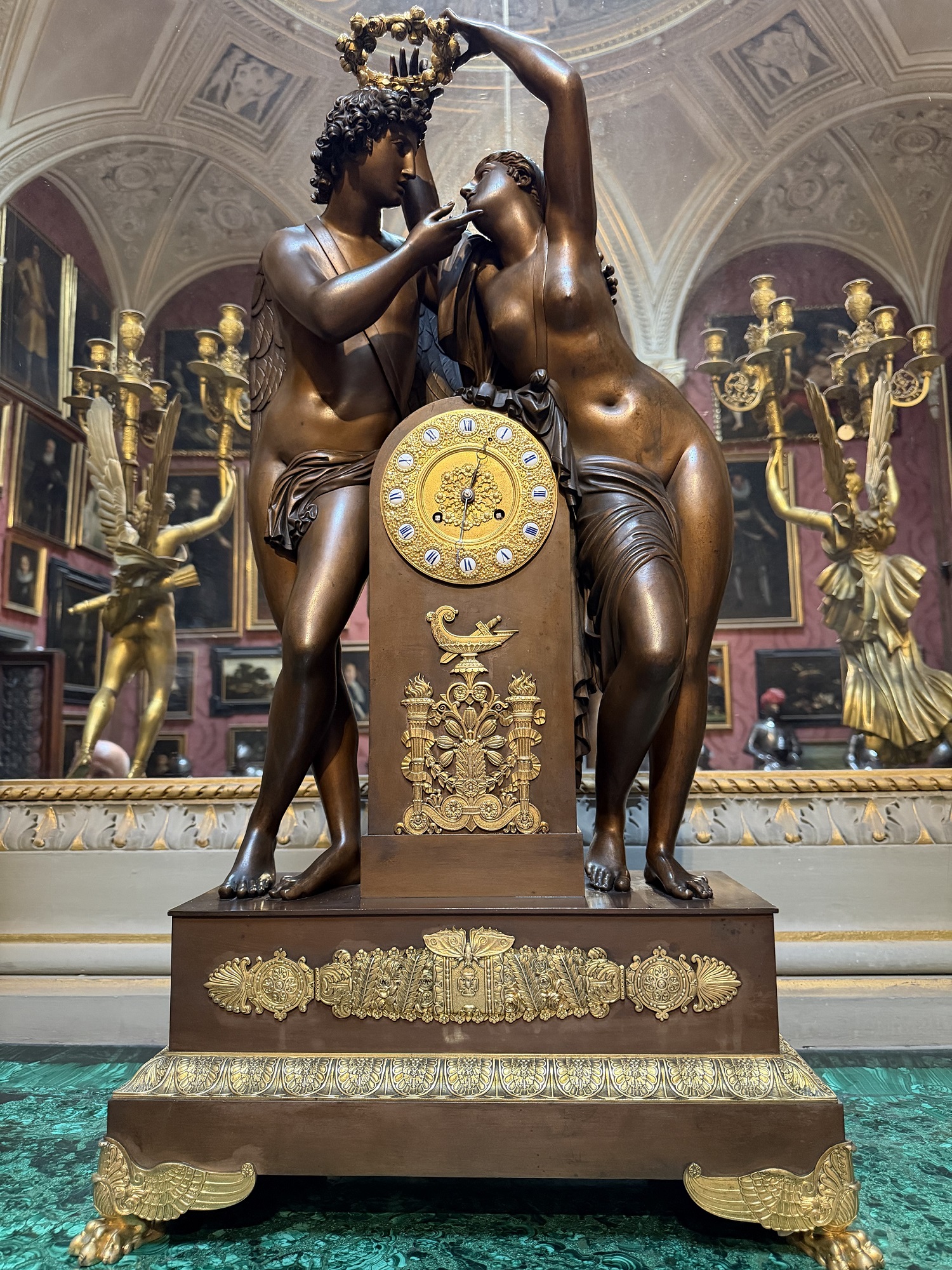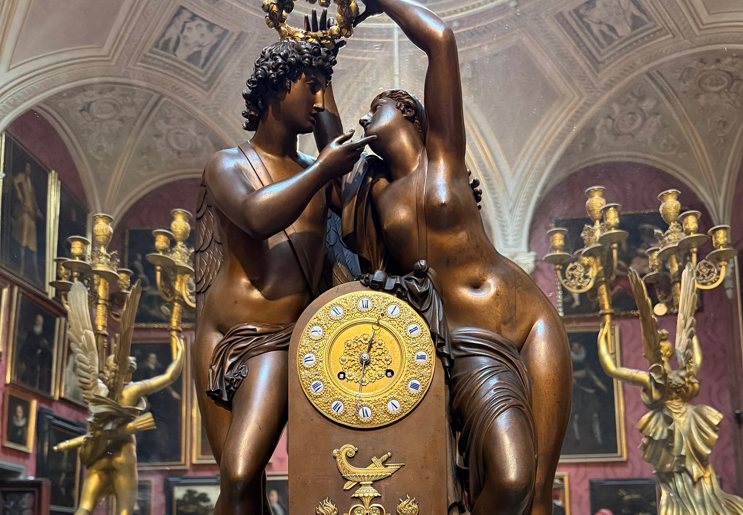 Al centro di questa partnership il restauro dell’antico orologio a pendolo francese del 1820 - appartenente alla collezione del Museo Stibbert - che raffigura Psiche nell’atto di incoronare Amore con un serto di rose. Le due figure mitologiche, separate al centro da una stele che reca alla sommità il quadrante dell’orologio, furono fuse riprendendo un celebre modello realizzato dallo scultore Claude Michallon (1752 - 1799) e utilizzato per la prima volta da Pierre Philippe Thomire per abbellire una pendola. L’esemplare del Museo Stibbert, di quasi un metro d’altezza per circa 40 kg di peso e del valore stimato di 30.000 euro, reca graffita sul quadrante la firma di Antoine Marchand e rappresenta una versione tratta dell’allora celebre modello di Michallon su commissione del mercante d’orologi parigino Marchand che volle riprendere un soggetto, quello di Amore che incorona Psiche, allora molto in voga.