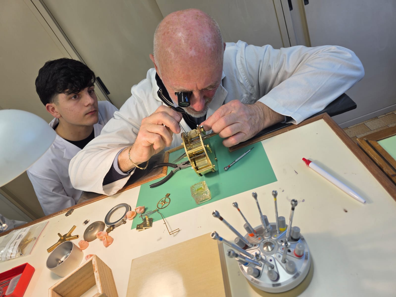Protagonista del percorso è Luigi Goffredo, studente di 22 anni nato a Napoli, che attualmente frequenta il corso “Pendoleria e restauro di orologi antichi e d’epoca” dell’Università dell’Età Libera di Firenze, ospitato presso l’I.S.I.S. Leonardo da Vinci, dove si sta formando per proseguire l’attività di famiglia nel settore dell’orologeria. Grazie alla borsa di studio della Fondazione Cecilia Gilardi, Luigi ha avuto l’opportunità di partecipare attivamente alle operazioni di restauro, sotto la guida del professor Andrea Palmieri, massimo esperto nazionale nel campo dell’orologeria antica e moderna che vanta esperienze e collaborazioni con istituzioni d’eccellenza in Italia e all’estero, come la Maison I.W.C. (International Watch Company) in Svizzera, il Rotary Club, il Palazzo del Quirinale, la Galleria degli Uffizi, Palazzo Pitti, il Museo Correr di Venezia, la Fondazione Palazzo Strozzi e molte altre. L’esperienza del professore con le complessità tecniche e storiche di un manufatto museale ha reso così possibile per il giovane studente la condivisione e l’apprendimento diretto di metodologie e competenze difficilmente trasmissibili al di fuori di un contesto laboratoriale di eccellenza.